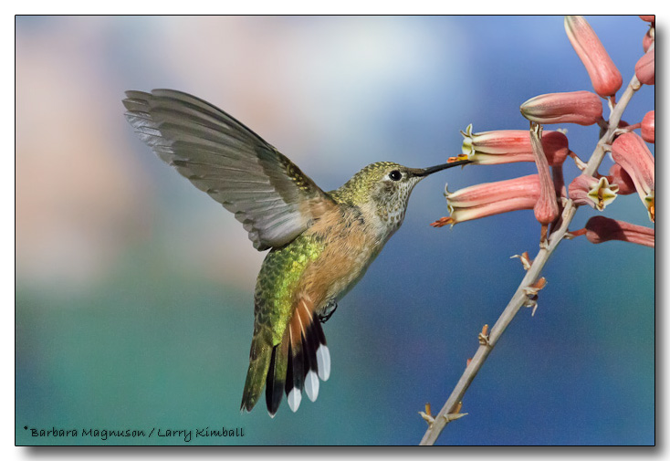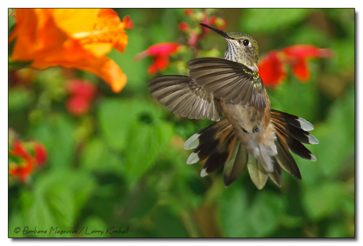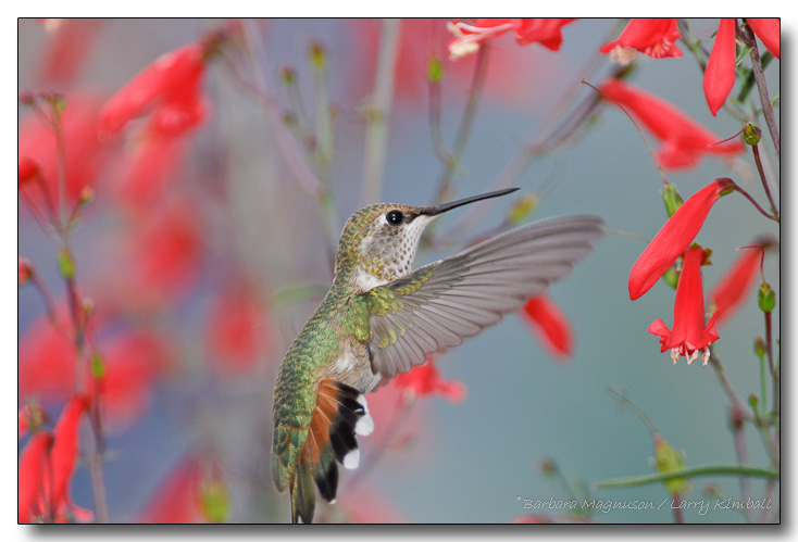 Broad-tailed Hummingbird, by Larry Kimball. Nikon D2X, focal length 500mm, f8 at 1/2500, ISO 640