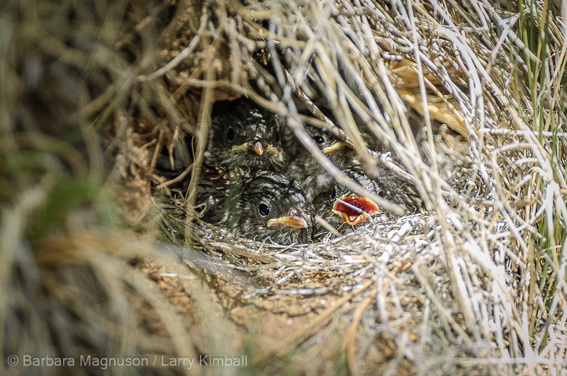 Dark-eyed Junco [Junco hyemalis] nestlings growing to fill their nest, Fremont County, Colorado