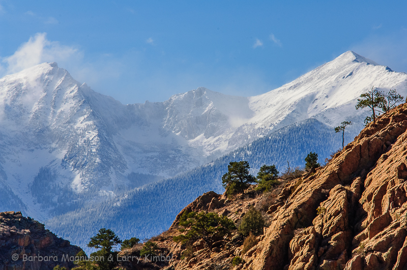 In our own neighborhood the view of the looming Sangre de Cristo Mountains with fresh snow viewed between the red rock walls of Bighorn Sheep Canyon and Cotopaxi, Colorado. Mountains in the right conditions and light can stir awe.